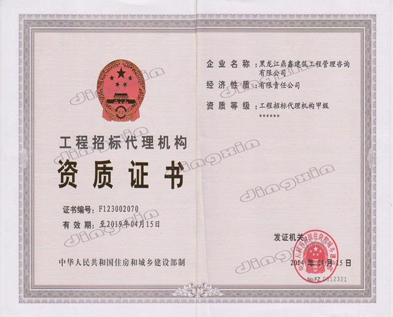 黑龍江鼎鑫建筑工程管理咨詢有限公司成立于2005年,注冊資金400萬元。具備中華人民共和國住房和城鄉建設部批準的工程招標代理機構資格、中華人民共和國財政部批準的政府采購招標代理機構資格、黑龍江省商務廳批準的機電產品國際招標代理機構資格、中華人民共和國住房和城鄉建設部批準的工程造價咨詢甲級資質、黑龍江省住房和城鄉建設廳批準的房屋建筑工程監理乙級(市政公用工程監理乙級資質)。主要從事建設工程及政府采購招標、造價咨詢、工程監理、項目管理等業務。